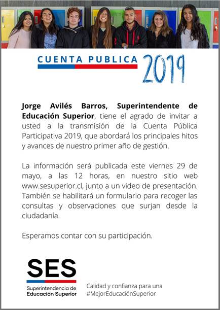 Transmisión de la Cuenta Pública Participativa 2019 de la Superintendencia de Educación Superior.